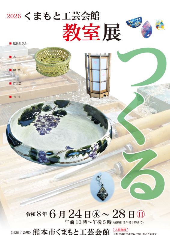皆様方の新鮮で創造豊かな感性を「くまもと⼯芸会館」でぜひ創作してください。