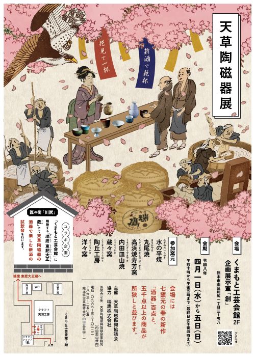 また、瑞鷹㈱とのコラボ企画として、くまもと工芸会館に隣接する「瑞鷹 東肥大正蔵」で、天草陶磁器の酒器で楽しむ新酒の試飲会を行います。