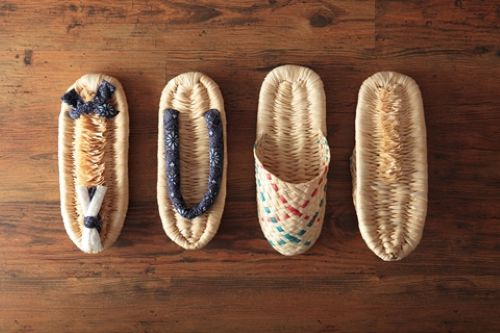 また他にも、静岡県の遠州綿紬のスリッパや大分県国東の七島イの草履、熊本県八代産のイ草を使ったわらじや草履など約100点を出品します。