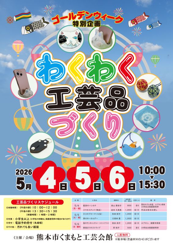 ために工芸逸品の展示販売と各種工芸教室を開催しています。